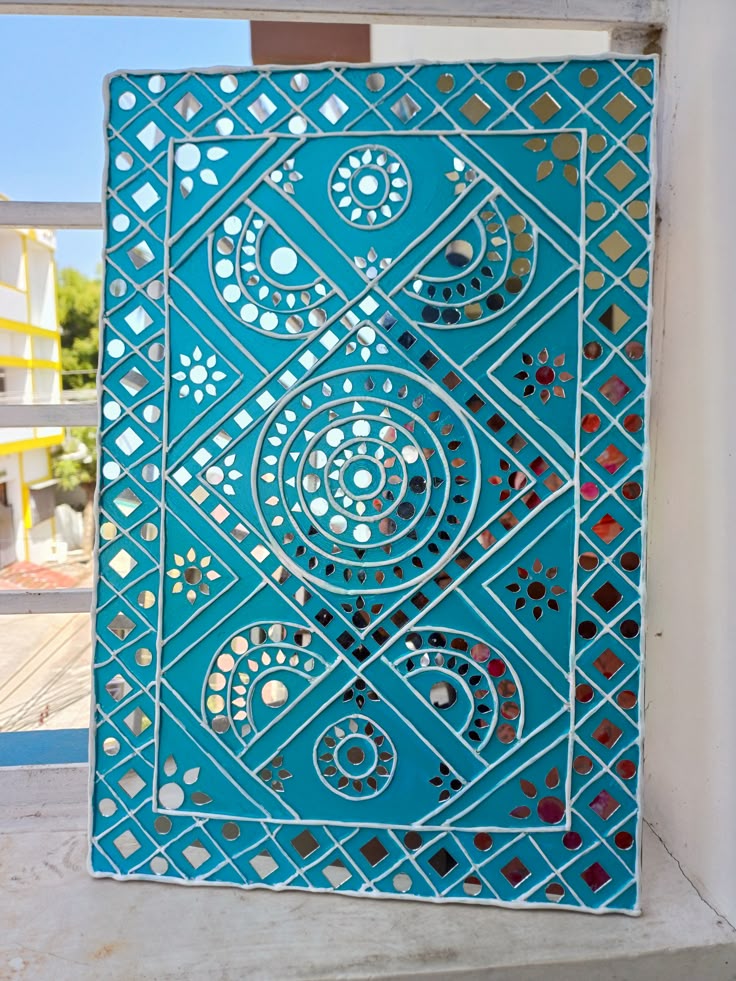 تابلو آینه کاری نقش برجسته لیپان آرت زمینه فیروزهای ابعاد بزرگ 120*80 کد48۴٬۹۰۰٬۰۰۰ تومان