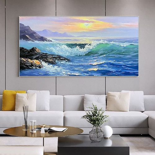 تابلو نقاشی رنگ روغن دریا ۱۴۰*۸۰ کد ۰۱۴