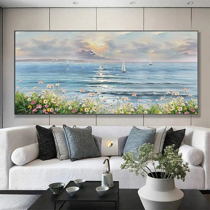 تابلو نقاشی رنگ روغن دریا ۱۴۰*۸۰ کد ۰۱۴