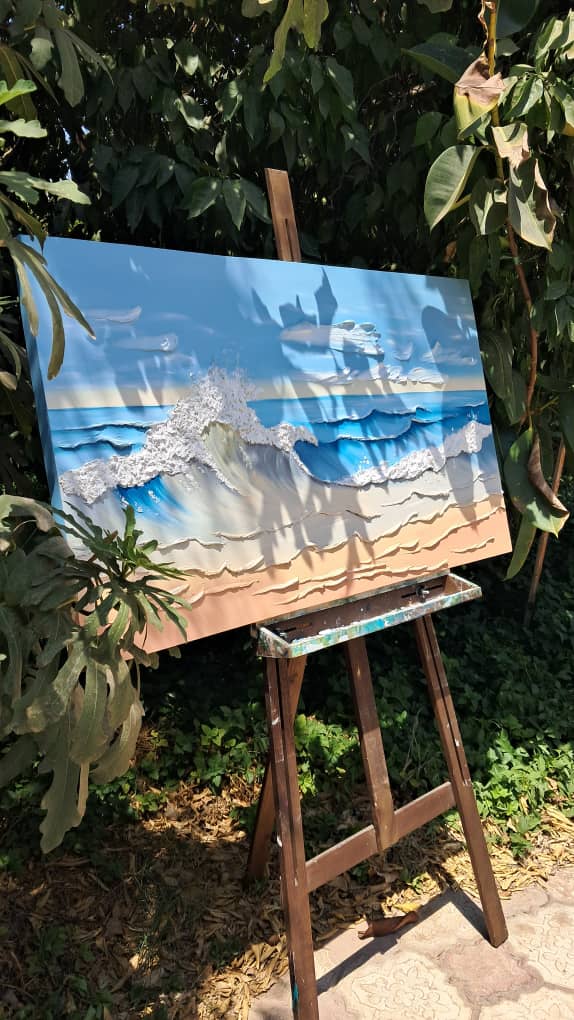 تابلو دکوراتیو نقش برجسته دریا و ساحل آفتابی(نمونه اجرا شده)