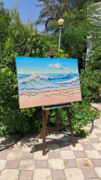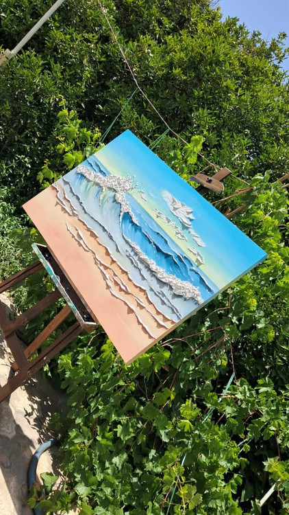 تابلو نقاشی نقش برجسته دریا ساحل آفتابی(نمونه اجرا شده)