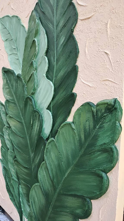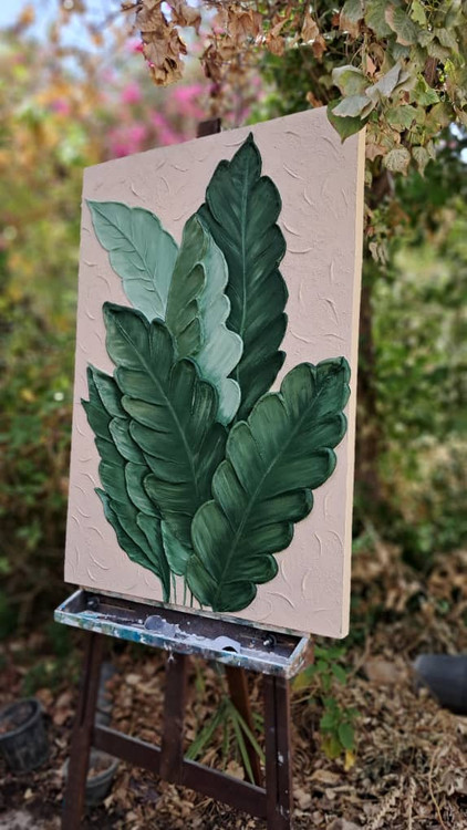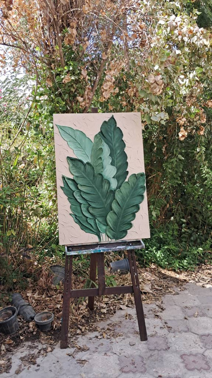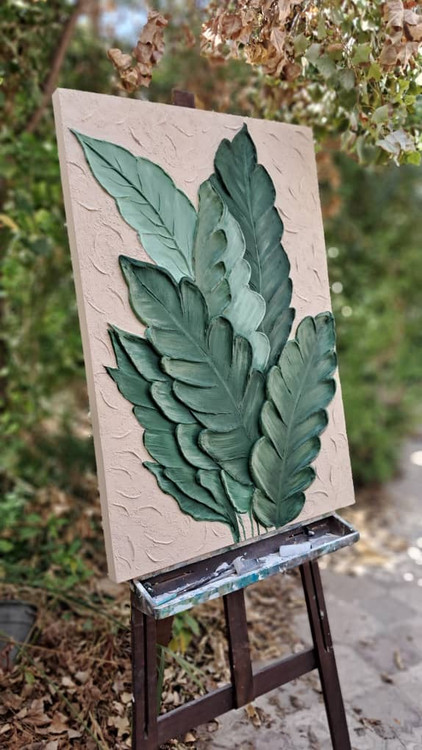 تابلو نقاشی فوق برجسته طرح برگ سبز بیس کار بوم نقاشی