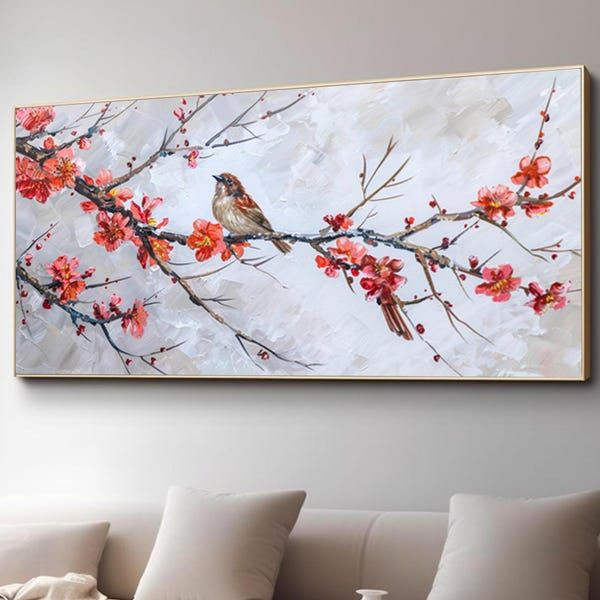 تابلو نقاشی رنگ روغن پرنده ۱۴۰*۷۰ کد ۰۱۵