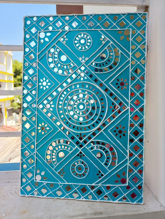 تابلو آینه کاری نقش برجسته لیپان آرت زمینه فیروزه‌ای ابعاد بزرگ 120*80 کد48