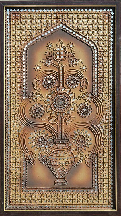 تابلو لیپان آرت آینه کاری طرح گلدون مادربزرگ با زمینه سایه کاری