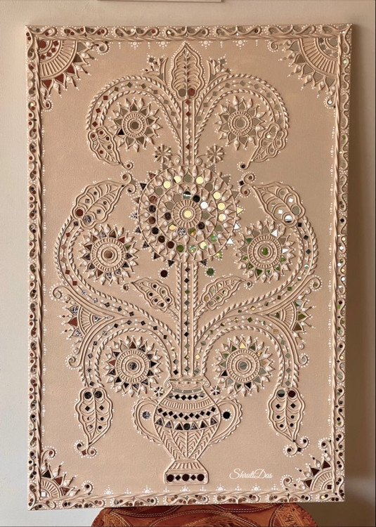 تابلو دکوراتیو نقش برجسته آینه کاری طرح کلدون قجری