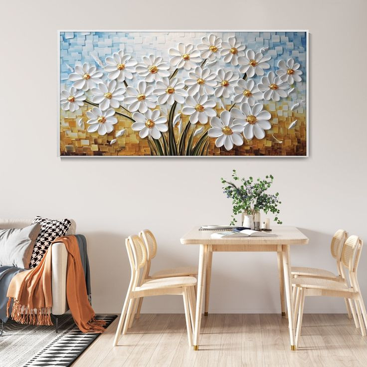 تابلو دکوراتیو نقش برجسته گل بابونه